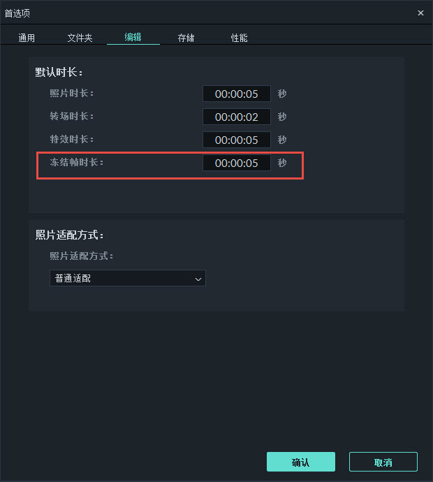 通过拖动其边缘来设置冻结帧时长。 您还可以通过转到文件 - >首选项 - >编辑来更改默认冻结帧时长。