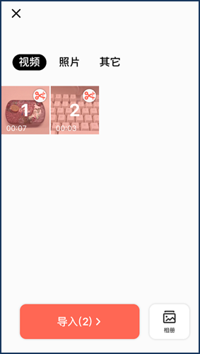 如果您需要剪切视频片段中间的部分,将游标拖到不需要的部分的起始点,然后按剪刀图标将片段分割,然后将游标拖到不需要的部分的末尾并再次按剪刀图标,选择这部分并按删除图标将其删除。
