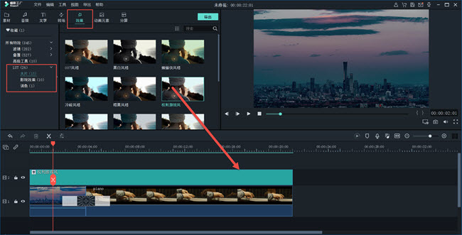 分别拖动滑块以调整色温,色调,对比度,饱和度和亮度。知道精确调整的参数,也可以输入数值。 如果想一次性调整整个视频,还可以使用3D LUT效果。可以通过预览窗口,来查看调整效果。